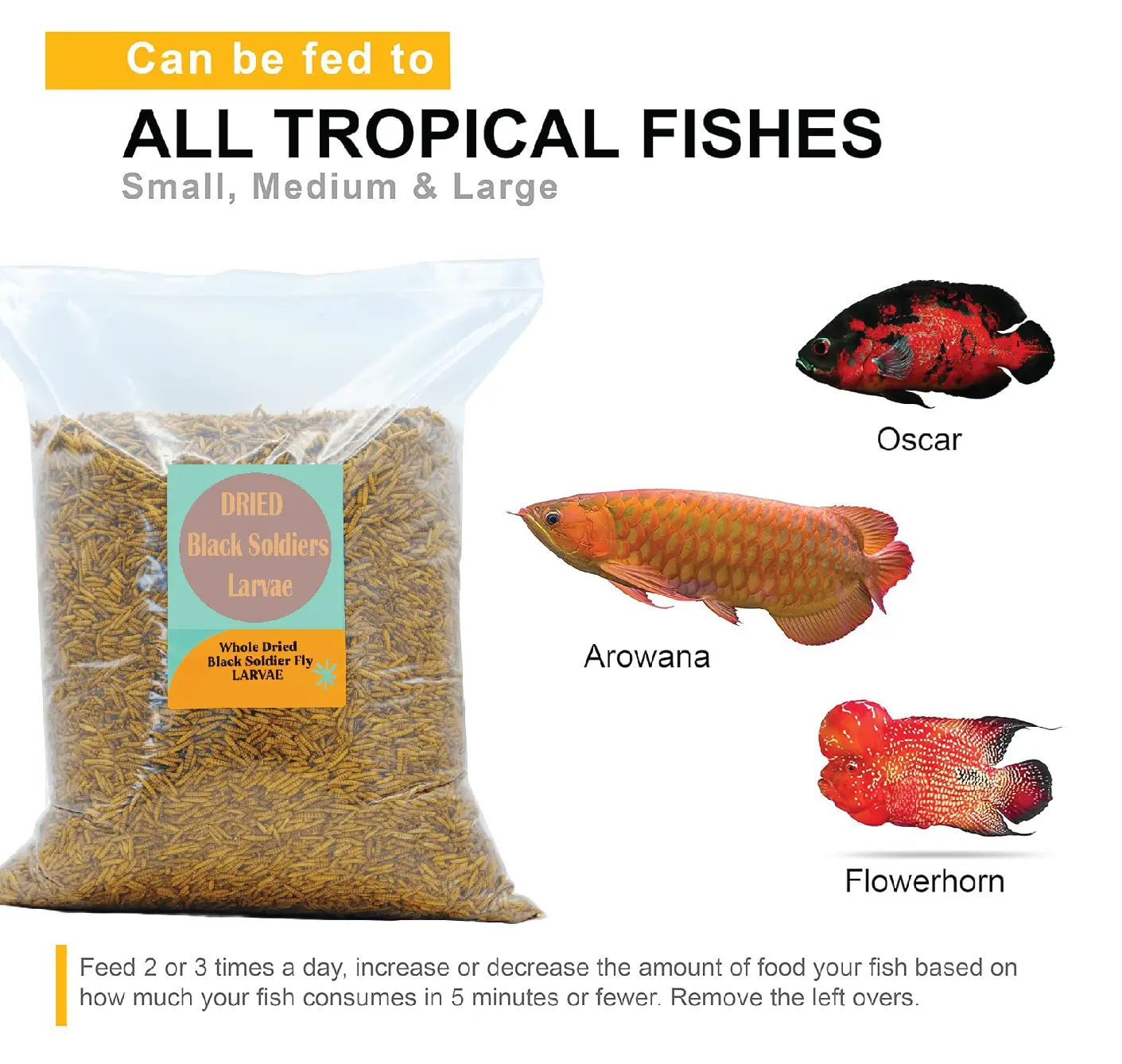 The growing awareness around sustainable and nutritious feeding options has made Black Soldier Fly (BSF) larvae an ideal choice for pet lovers and aquarists. BSF larvae are nutrient-dense, environment-friendly, and suitable for a wide range of animals including big mouth fishes, birds, reptiles, and small mammals. In this guide, we’ll explore how to use dried and puffed BSF larvae, their benefits, feeding guidelines, and storage tips.