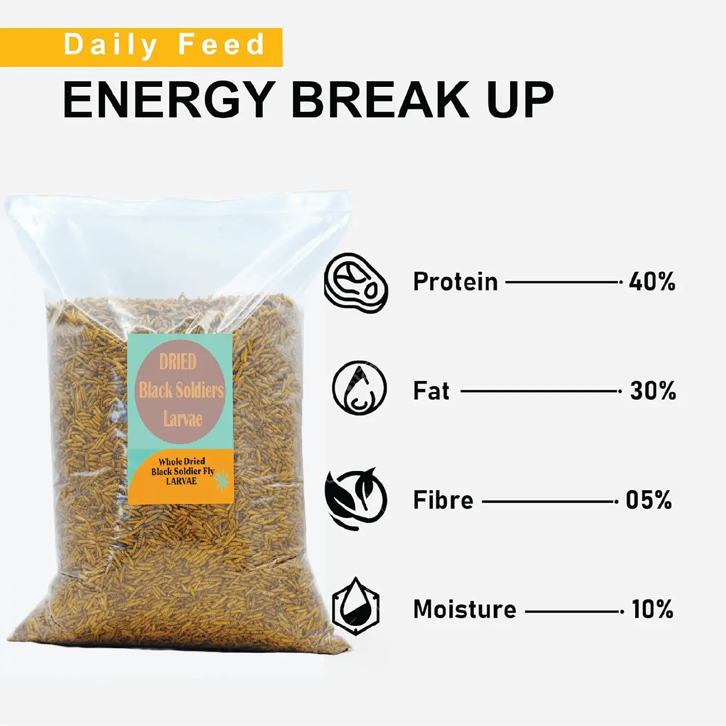 This composition makes BSF larvae a highly efficient alternative to traditional feeds like fishmeal, worms, and commercial pellets.
