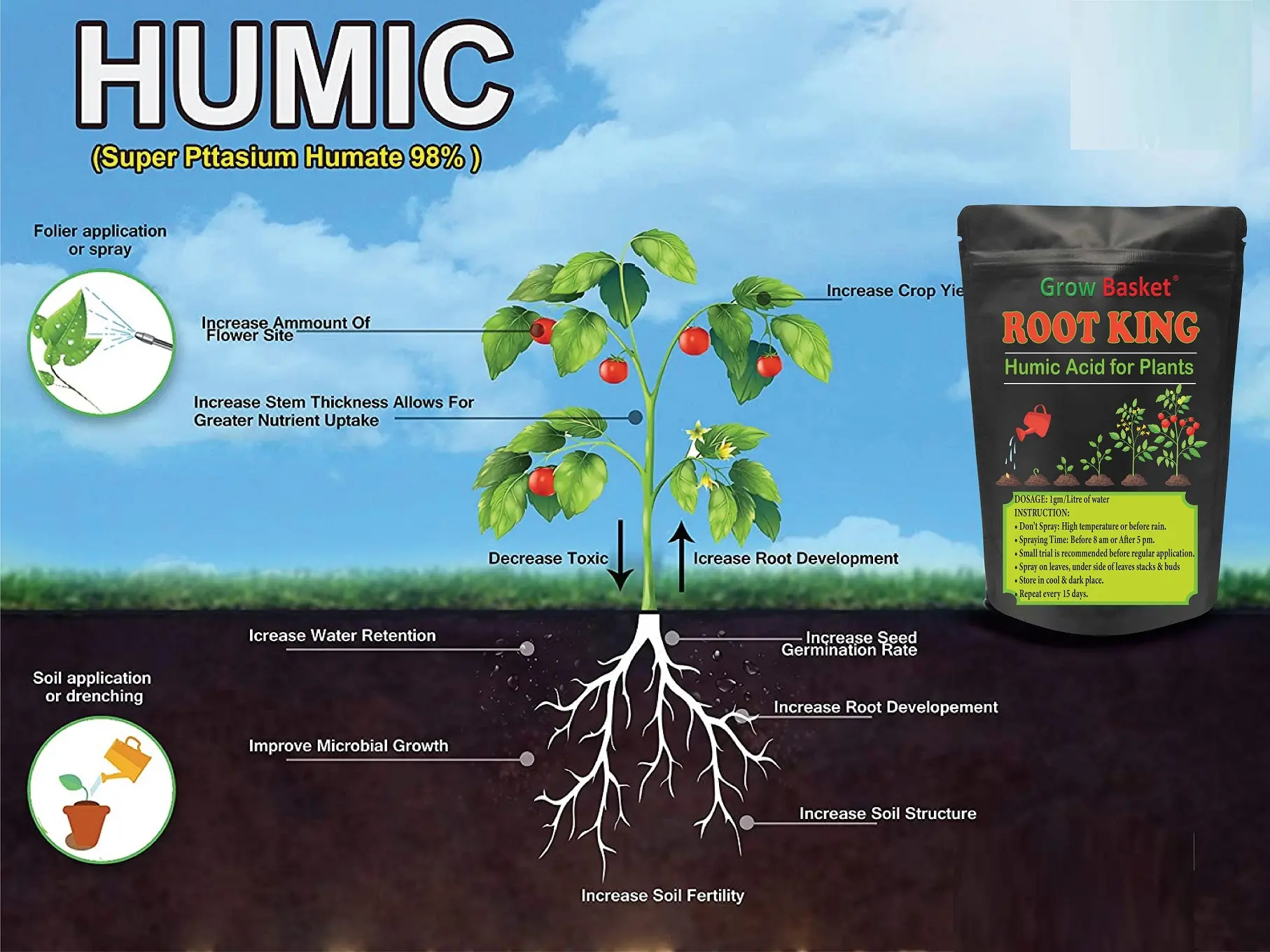 - Mix 1 gram of Humic Acid powder in 1 liter of water