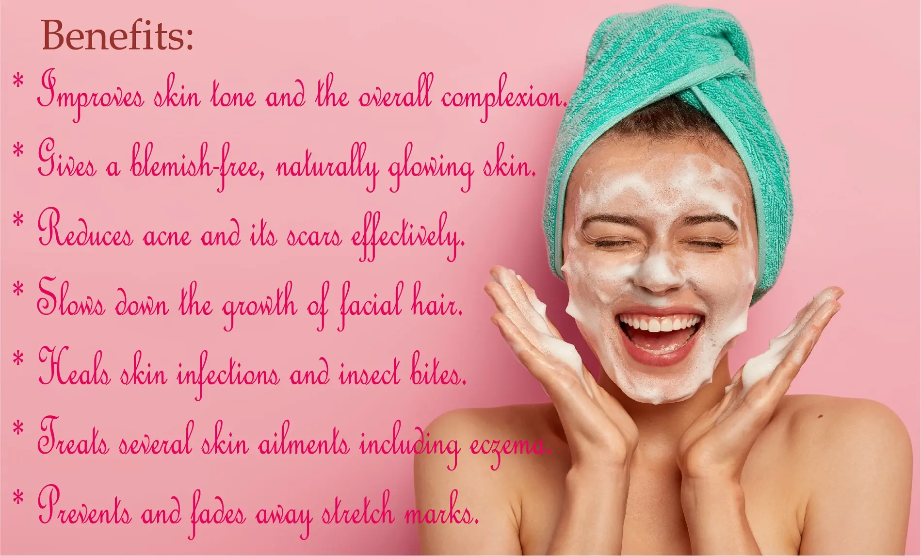 Use it on face and body to remove tan, reduce acne, and even tone the skin.